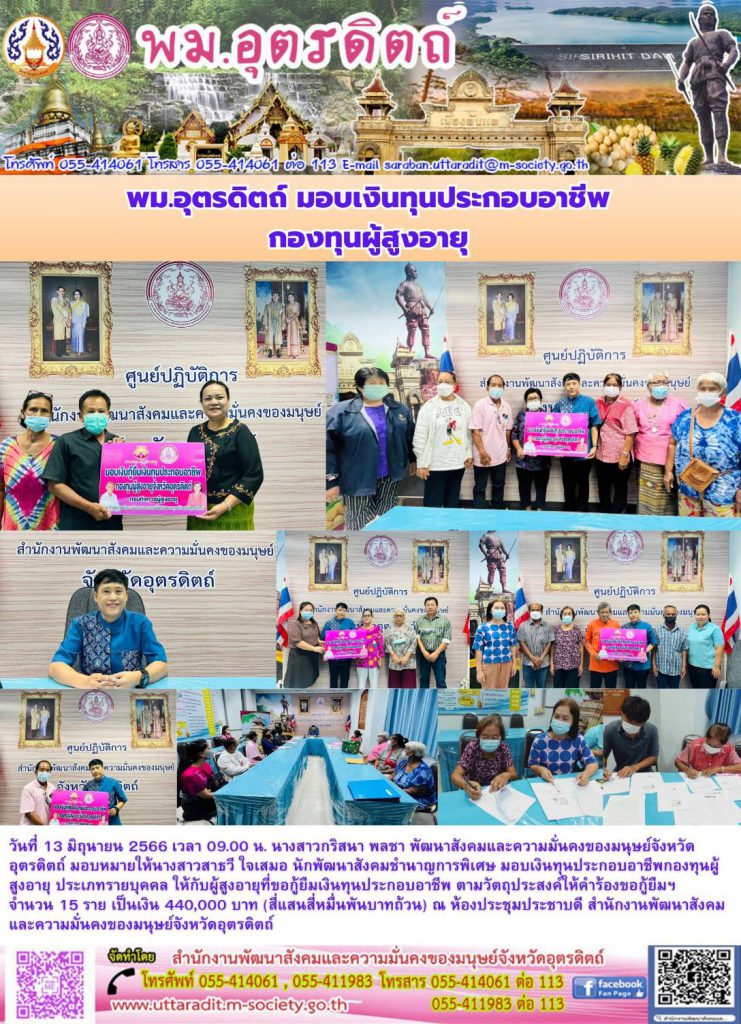 พม.อุตรดิตถ์ มอบเงินกู้ยืมเงินทุนประกอบอาชีพกองทุนผู้สูงอายุ จำนวน 15 ราย