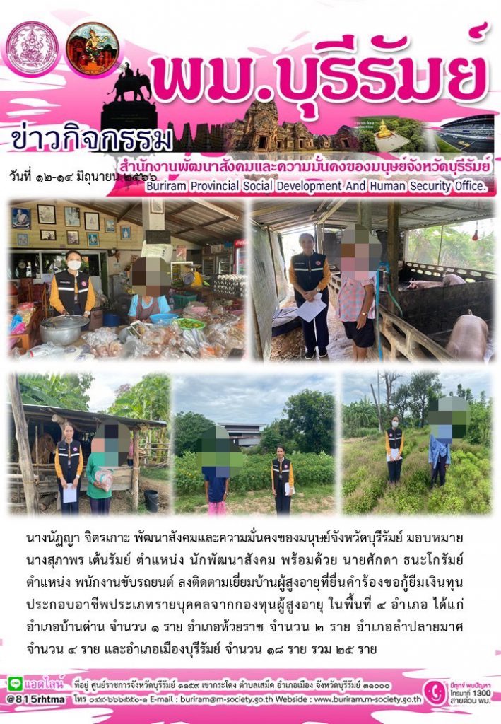 พม.บุรีรัมย์ ลงพื้นที่เยี่ยมบ้าน สอบข้อเท็จจริงผู้สูงอายุที่ขอกู้ยืมเงินทุนประกอบอาชีพจากกองทุนผู้สูงอายุ กรมกิจการผู้สูงอายุ จำนวน 25 ราย