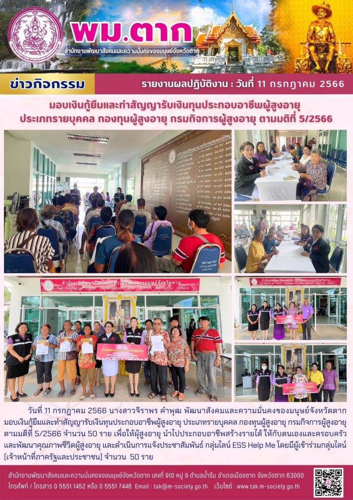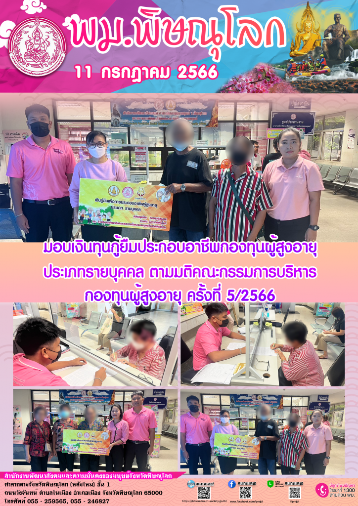 พม.พิษณุโลก มอบเงินกู้ยืมเงินทุนประกอบอาชีพ ประเภทรายบุคคลจากกองทุนผู้สูงอายุ