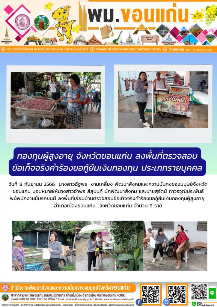พม.ขอนแก่น ลงพื้นที่เยี่ยมบ้าน สอบข้อเท็จจริงผู้สูงอายุที่ขอกู้ยืมเงินทุนประกอบอาชีพจากกองทุนผู้สูงอายุ กรมกิจการผู้สูงอายุ จำนวน 9 ราย