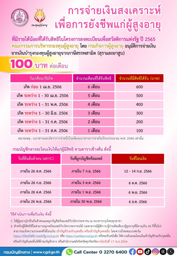 การจ่ายเงินสงเคราะห์ เพื่อการยังชีพแก่ผู้สูงอายุที่มีรายได้น้อยที่ได้รับสิทธิ์ในโครงการลงทะเบียนเพื่อสวัสดิการแห่งรัฐ ปี 2565
