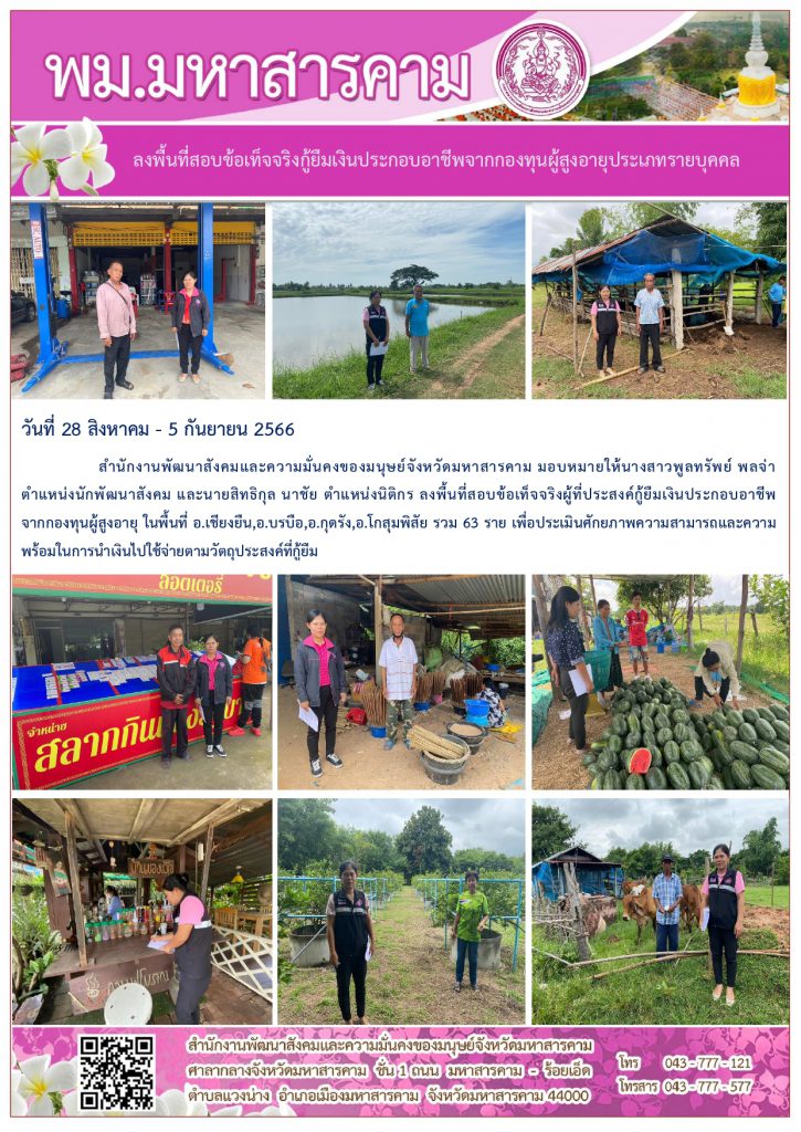 พม.มหาสารคาม ลงพื้นที่เยี่ยมบ้าน สอบข้อเท็จจริงผู้สูงอายุที่ขอกู้ยืมเงินทุนประกอบอาชีพจากกองทุนผู้สูงอายุ กรมกิจการผู้สูงอายุ จำนวน 63 ราย