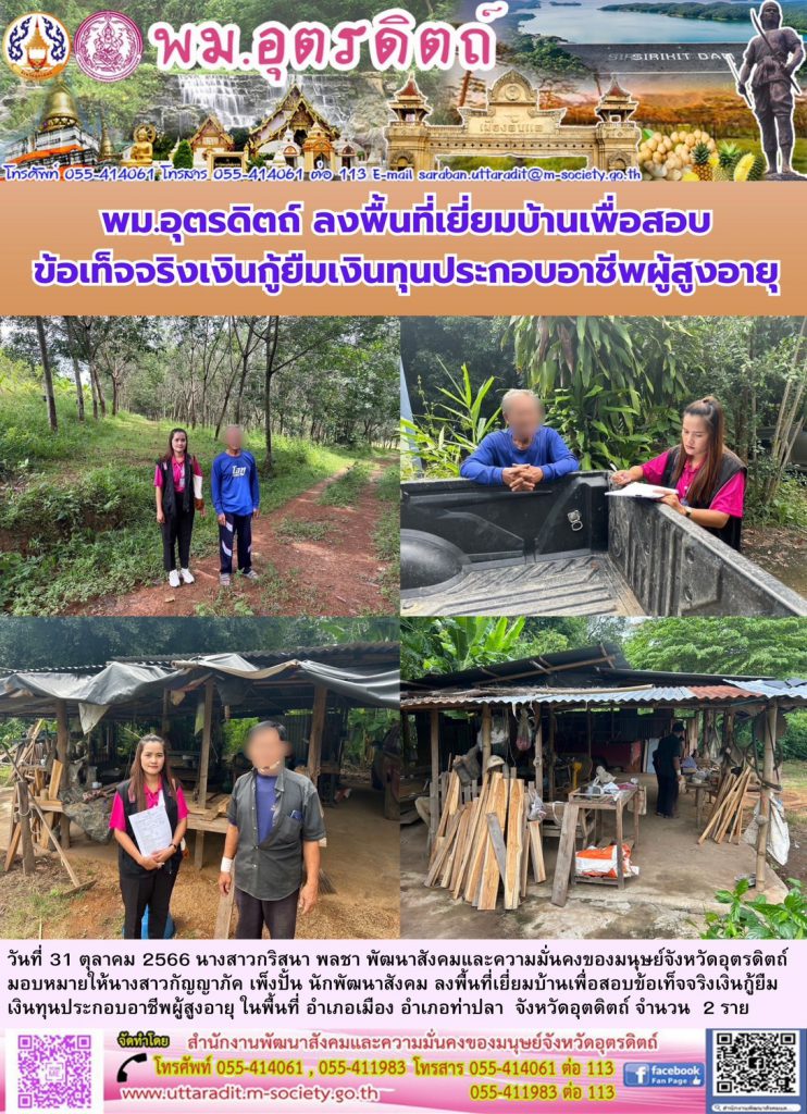 พม.อุตรดิตถ์ ลงพื้นที่เยี่ยมบ้าน สอบข้อเท็จจริง ผู้สูงอายุ ที่ขอกู้ยืมเงินทุนประกอบอาชีพจากกองทุนผู้สูงอายุ กรมกิจการผู้สูงอายุ จำนวน 2 ราย