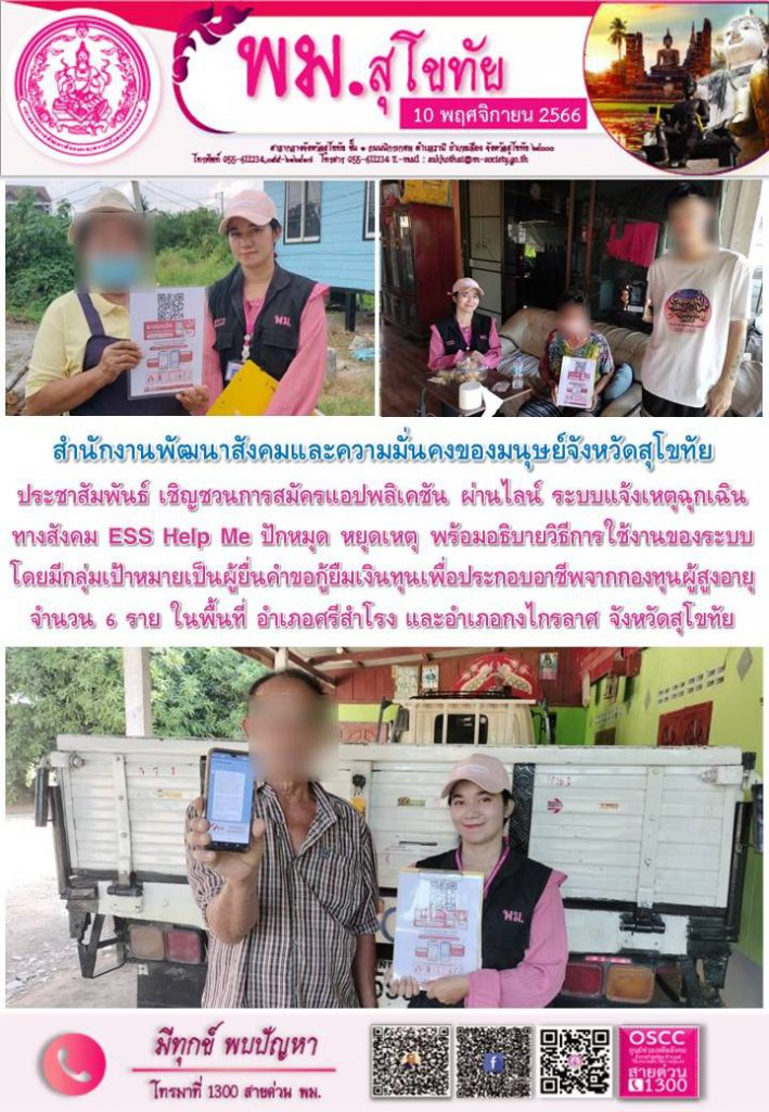 พม.สุโขทัย ลงพื้นที่เยี่ยมบ้าน สอบข้อเท็จจริงผู้สูงอายุที่ขอกู้ยืมเงินทุนประกอบอาชีพจากกองทุนผู้สูงอายุ กรมกิจการผู้สูงอายุ จำนวน 6 ราย