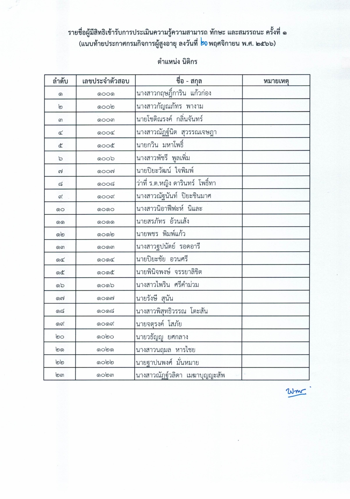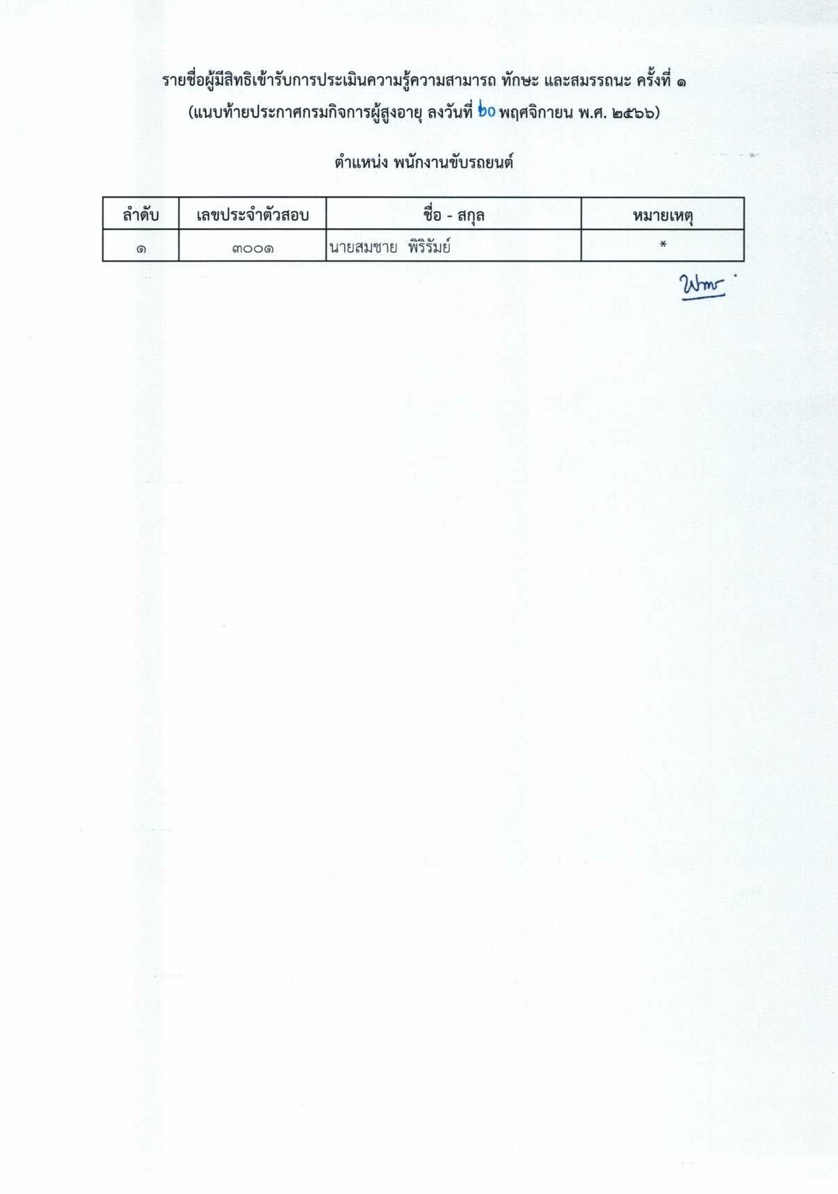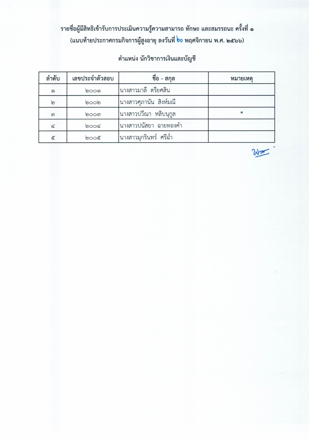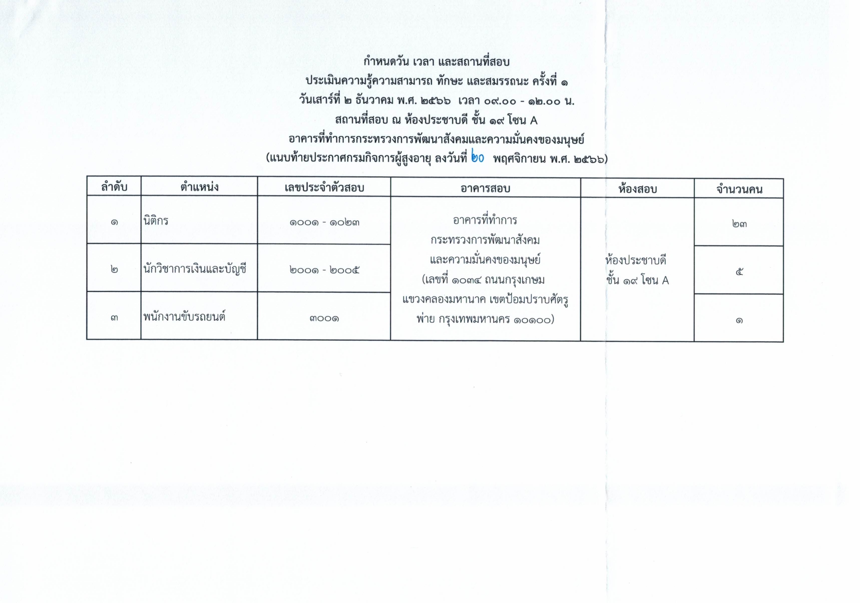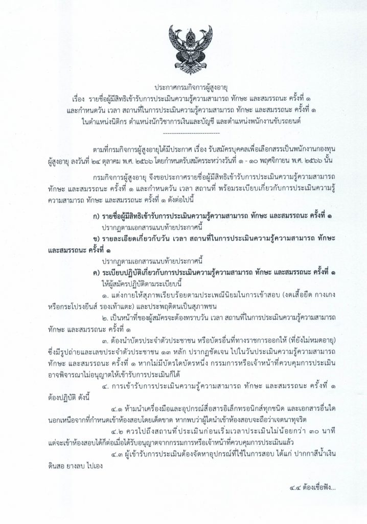 ประกาศรายชื่อผู้มีสิทธิเข้ารับการประเมินความรู้ความสามารถ ทักษะ และสมรรถนะ ครั้งที่ 1 และกำหนดวัน เวลา สถานที่ในการประเมินความรู้ความสามารถ ทักษะ และสมรรถนะ ครั้งที่ 1 ในตำแหน่งนิติกรตำแหน่งนักวิชาการเงินและบัญชีและตำแหน่งพนักงานขับรถยนต์