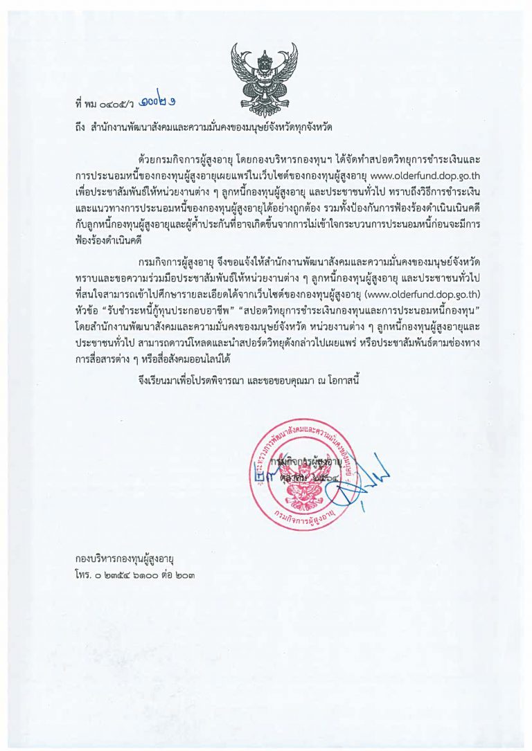 สปอตวิทยุการชำระเงินและการประนอมหนี้ของกองทุนผู้สูงอายุ